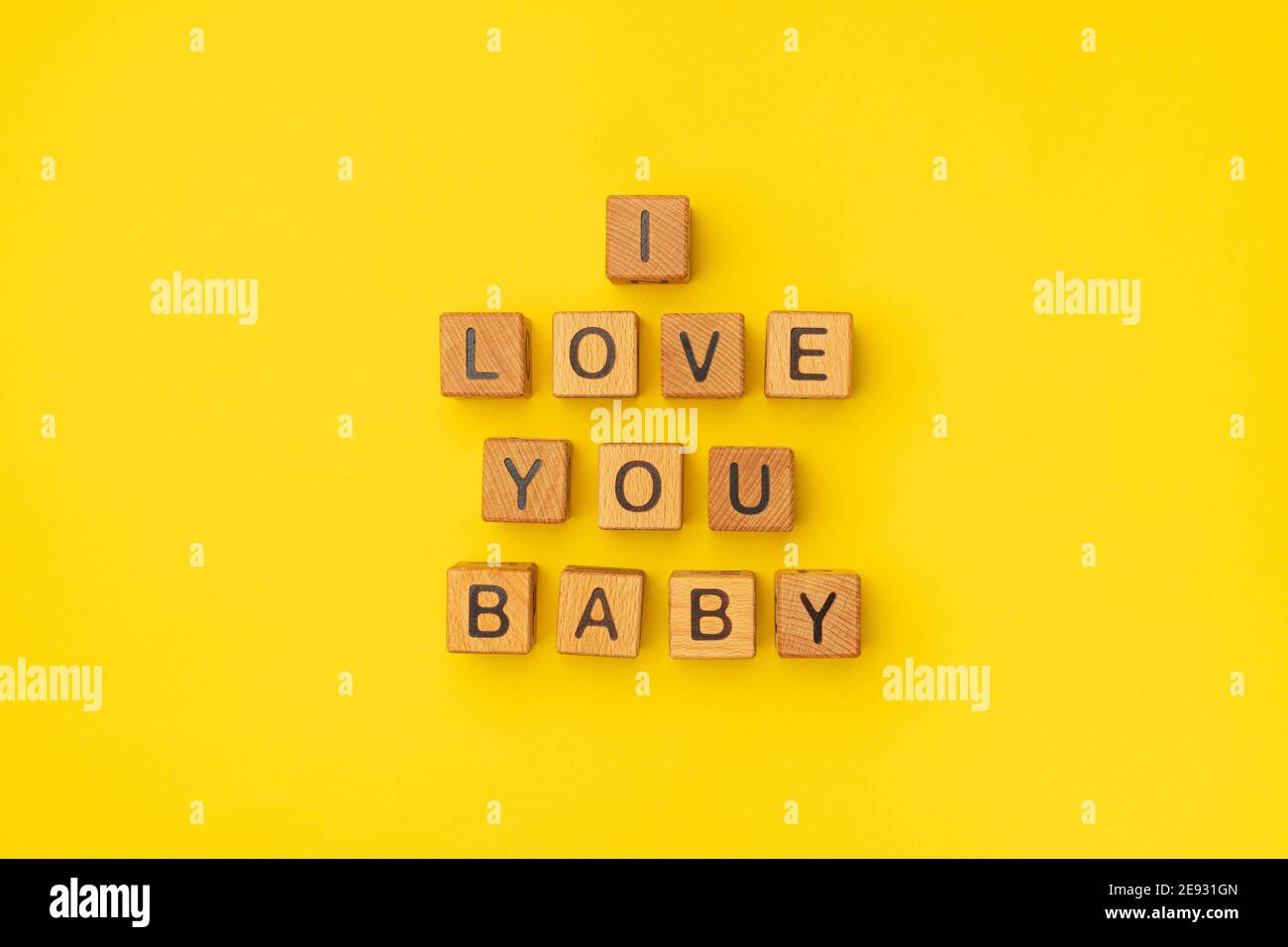 Cubes En Bois Avec La Phrase I Love You Baby Sur Un Fond Jaune Colore Vide Les Mots D Amour Sont Faits De Lettres De Bois Pour Votre Petite Amie Petit Ami Femme